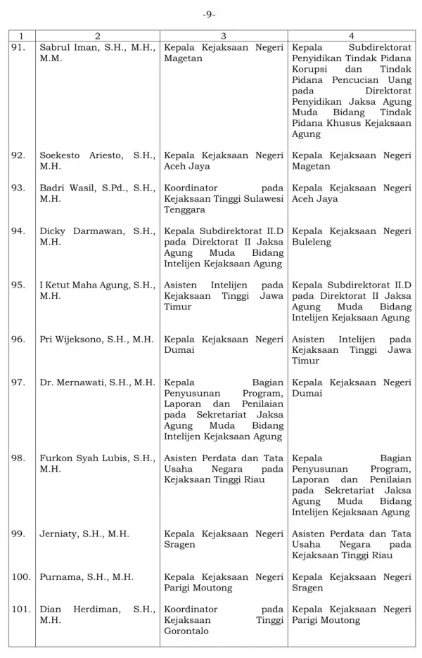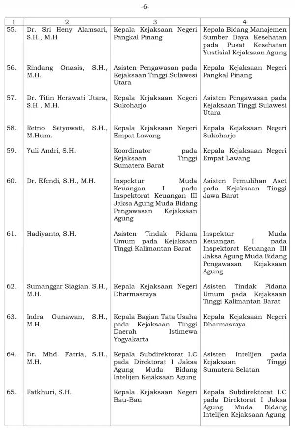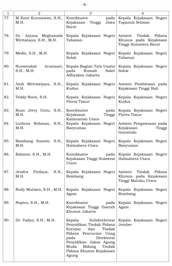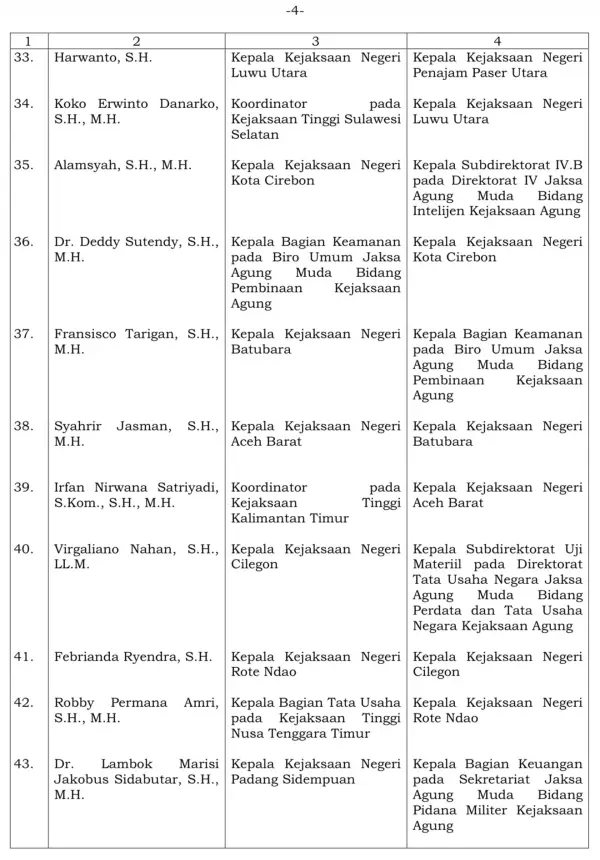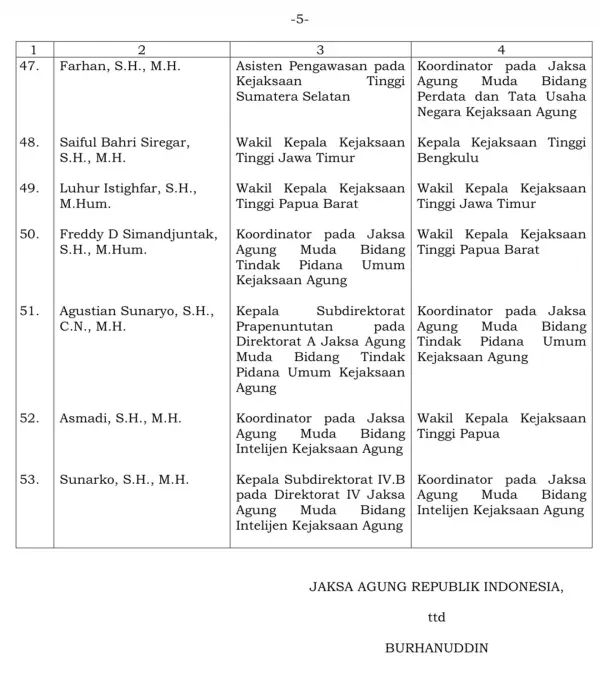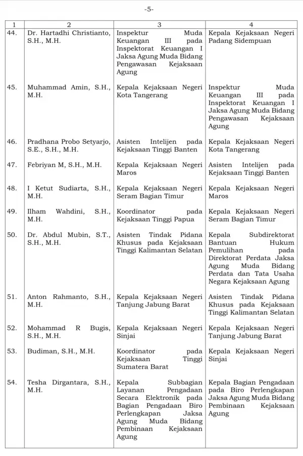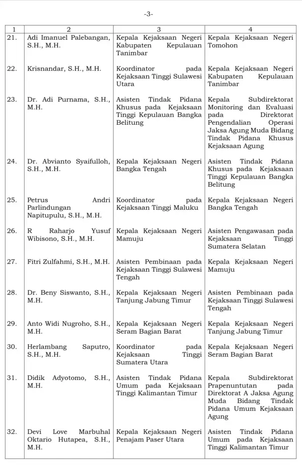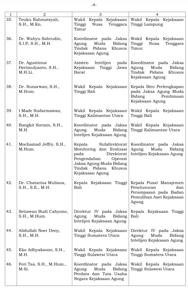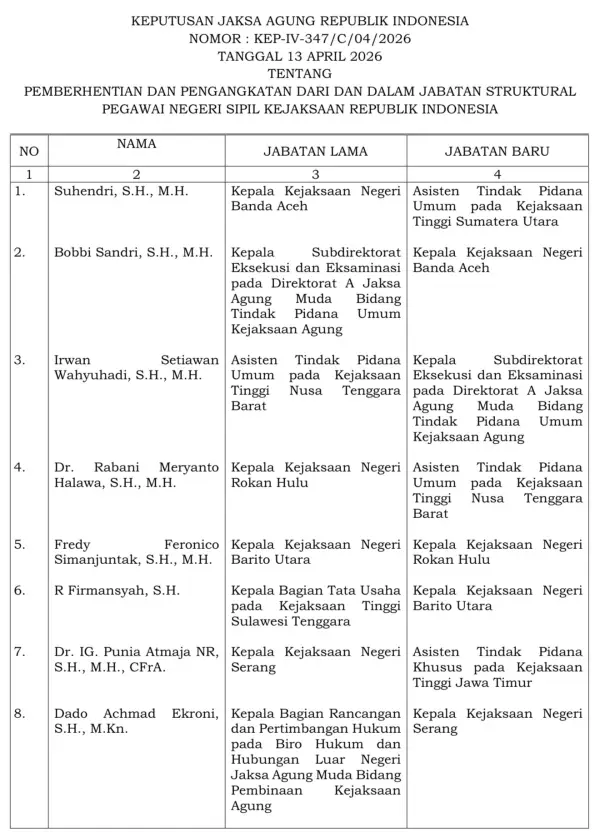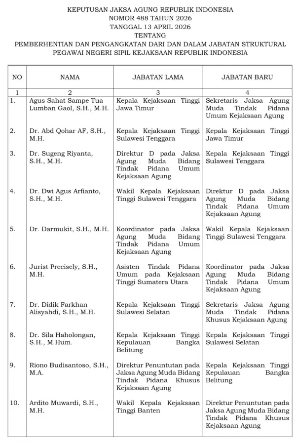 Mutasi ini termaktub pada Surat Keputusan Kajagung RI Nomor : 488 Tahun 2026, Tanggal 13 April 2026 dan Nomor : KEP-IV-374/C/04/2026, Tanggal 13 April 2026, "terlampir".